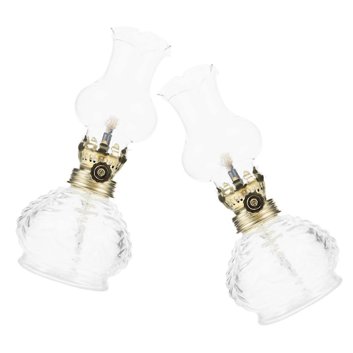 2pcs Vintage Glass Kerosene Oil Lanterns Hurricane Lamps for Home Decor and Emergency Lighting