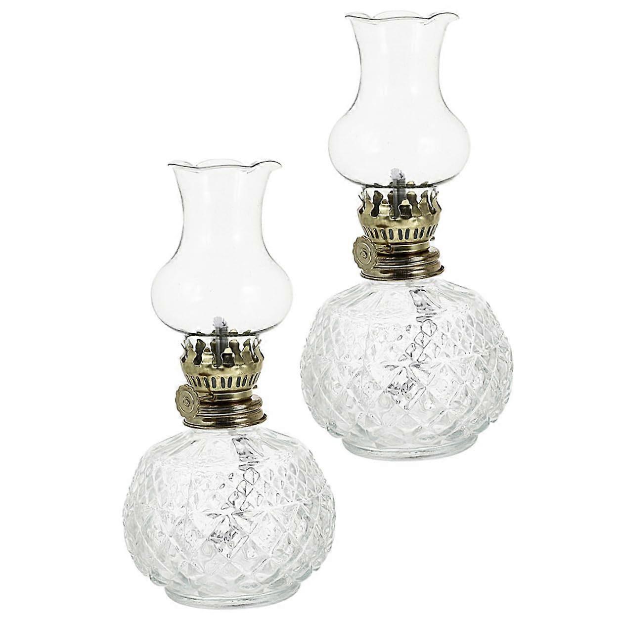 2pcs Vintage Kerosene Oil Lamp with Glass Chimney for Home Decoration and Emergency Lighting