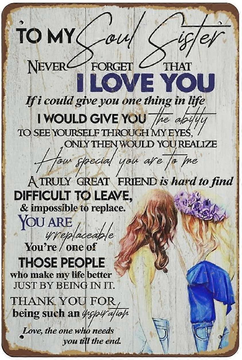 To My Soul Sister Never Forget That I Love You Poster, 8"x12" Retro Metal Tin Sign compatible with home decor, bar, cafe wall art