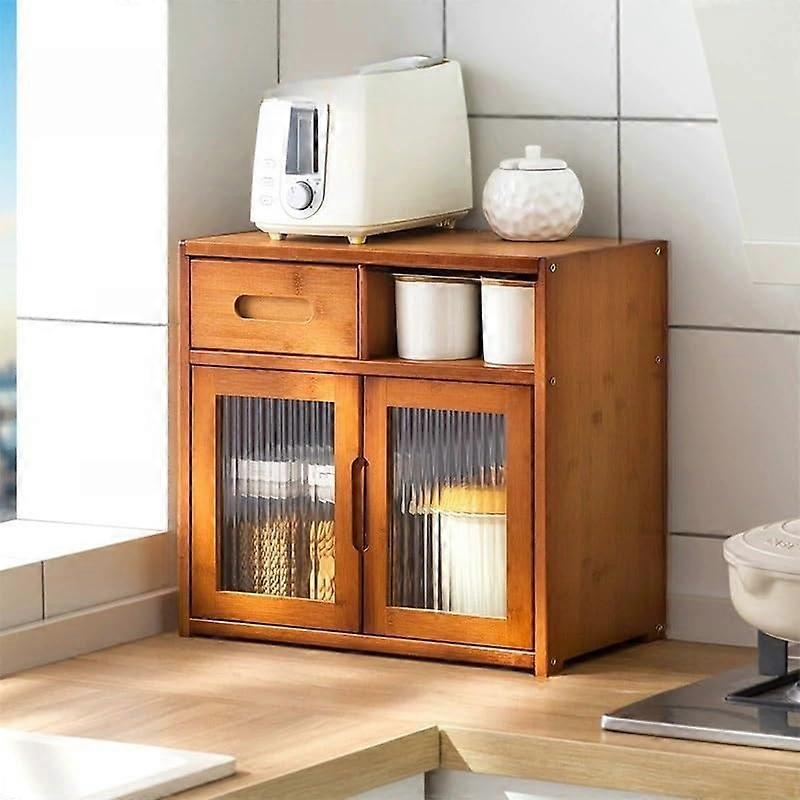 Bamboo Kitchen Storage Cabinet with Transparent Door, Large Capacity Countertop Organizer, Brown 42x23x39 cm