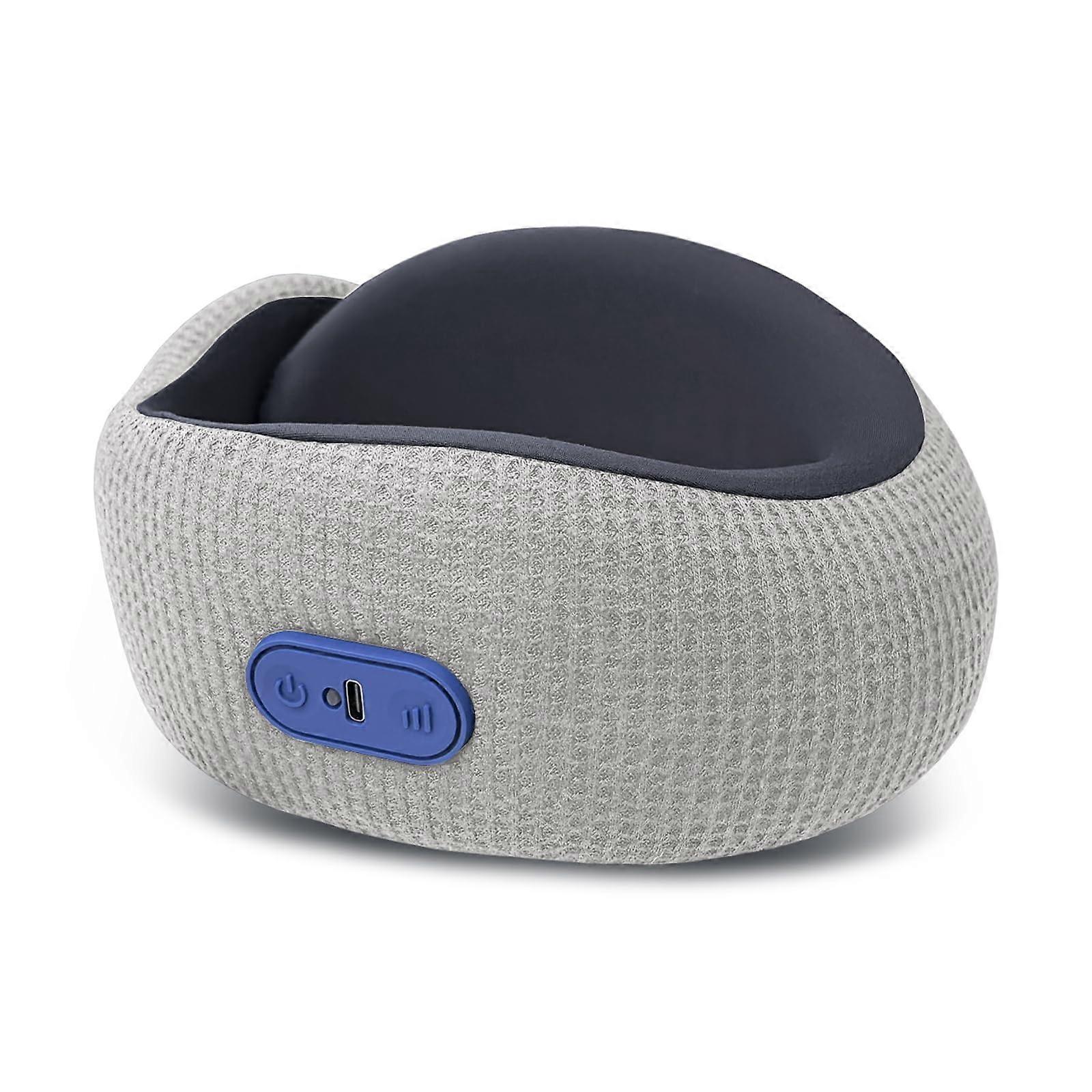 Travel Neck Pillow with Heat Therapy and Vibration Massage, Ergonomic USB Rechargeable Airplane Pillow with 360° Head and Neck Support, Grey