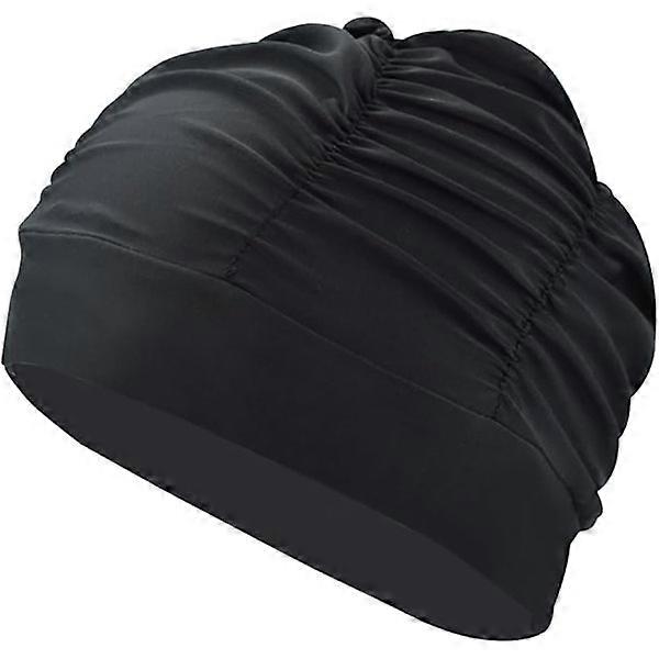 Women's Pleated Swimming Cap Ladies Swimming Cap Long Hair Swimming Cap Super Elastic Swimming Cap Beach Surfing Cap Comfortable Shower Cap (Black)
