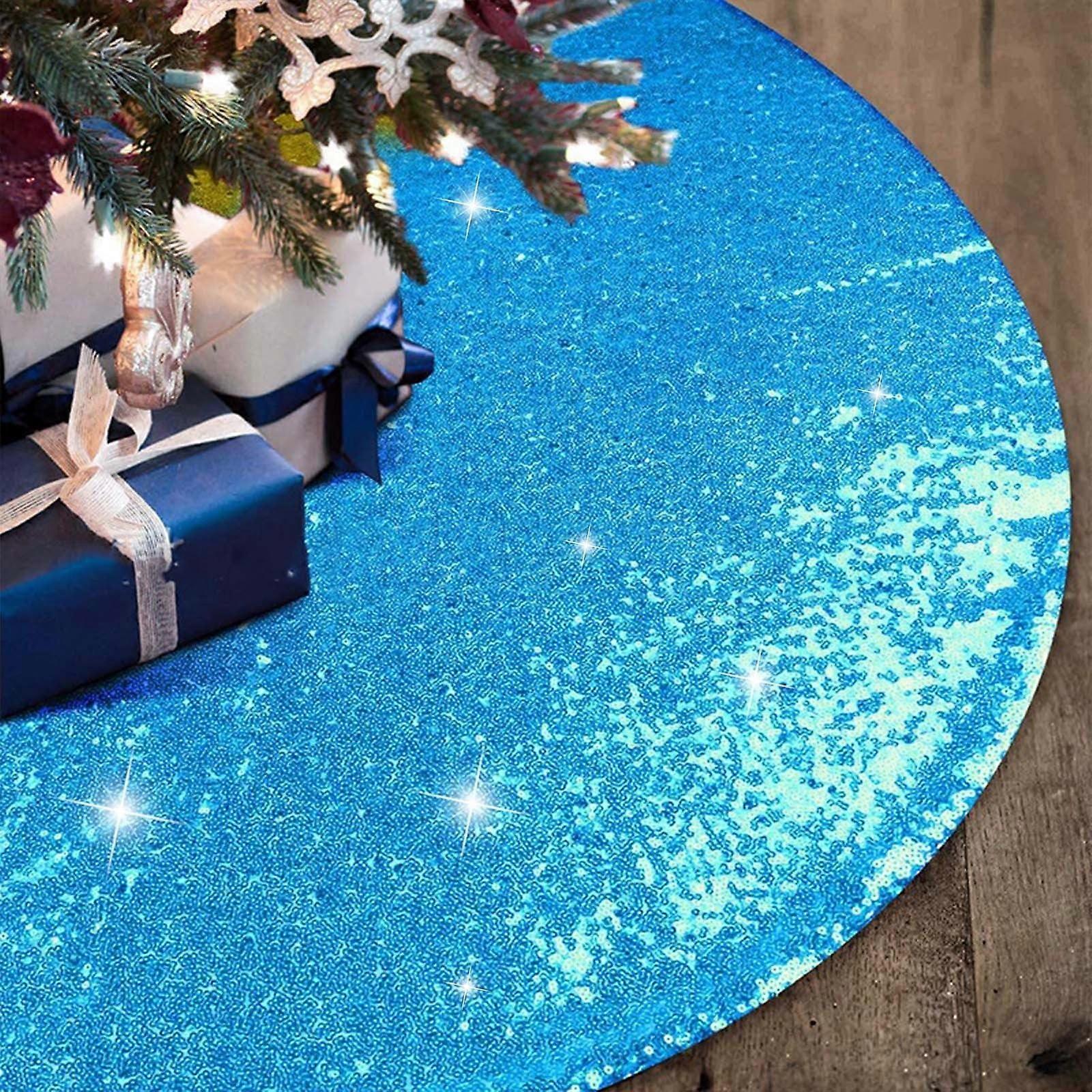 30" Sequin Christmas Tree Skirt, Velvet Xmas Tree Skirt Round Floor Mat, Glitter Vintage Tree Cover Blanket (1 PC)
