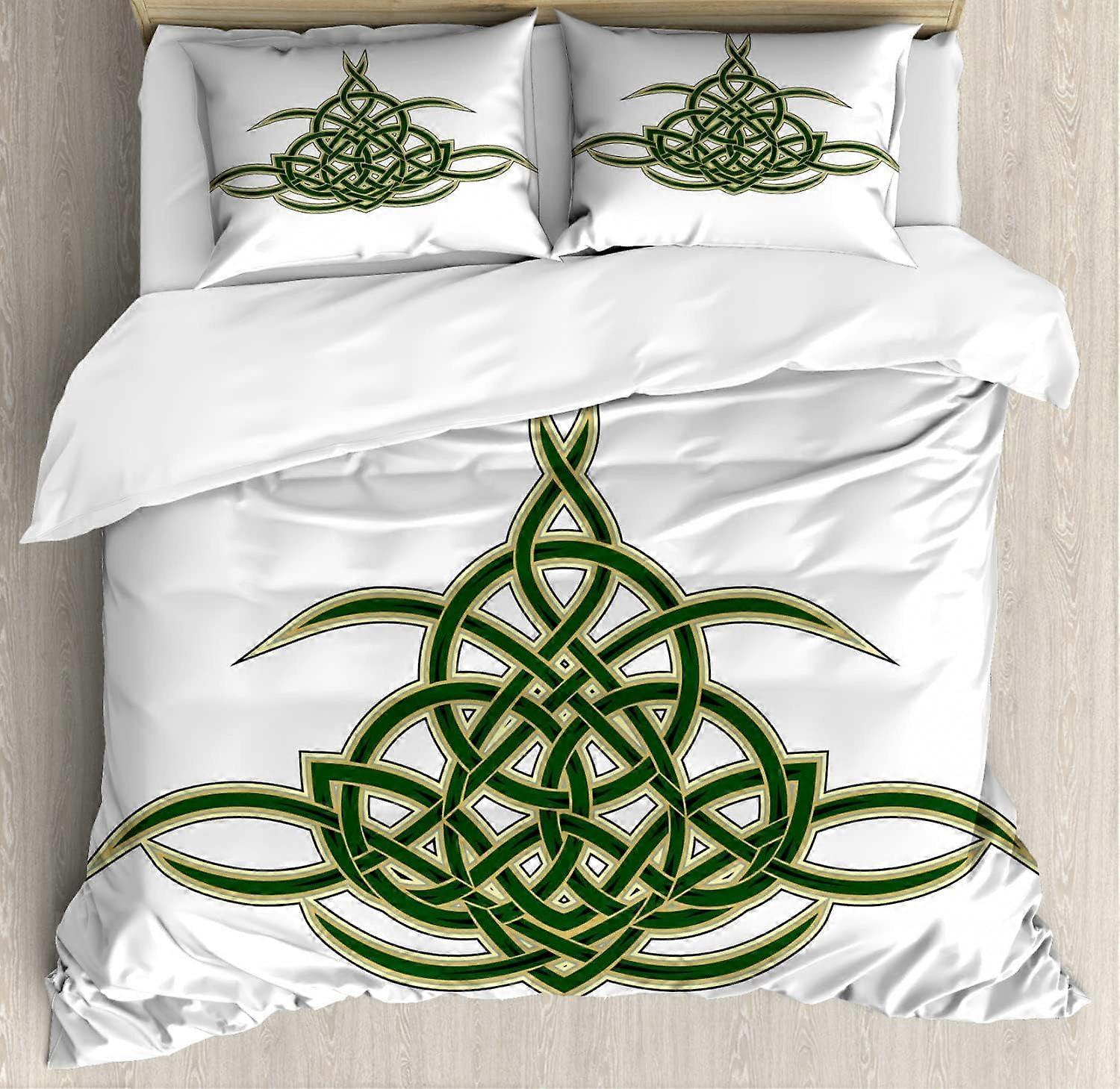 Celtic Duvet Cover 3 Pcs Set with 2 Pillowcases, Original Shield Design, Medieval Scotland Art, Yellow Green Compatible with Celtic Decor