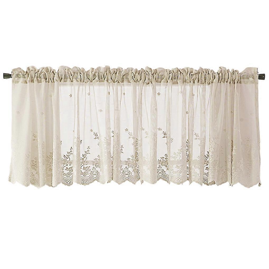 JANDEL Floral Lace Sheer Curtains - Rod Pocket Window Voile Sheer Drapes for Bedroom Kitchen Short Curtains 51 x 16 inch, White