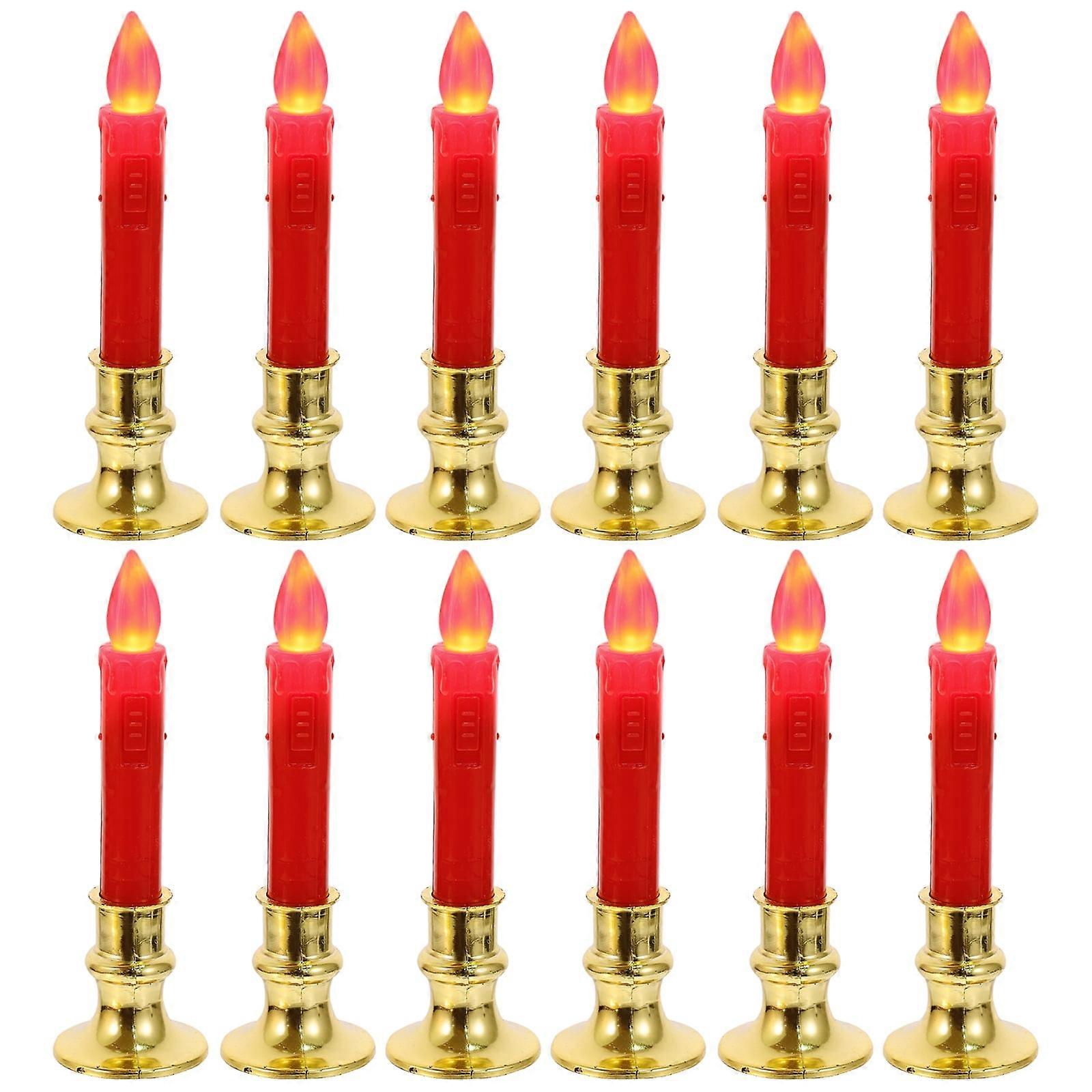 Decor LED Light Fake Candle Lamp Electronic Xmas Candles Battery Plastic Red 12 Pcs