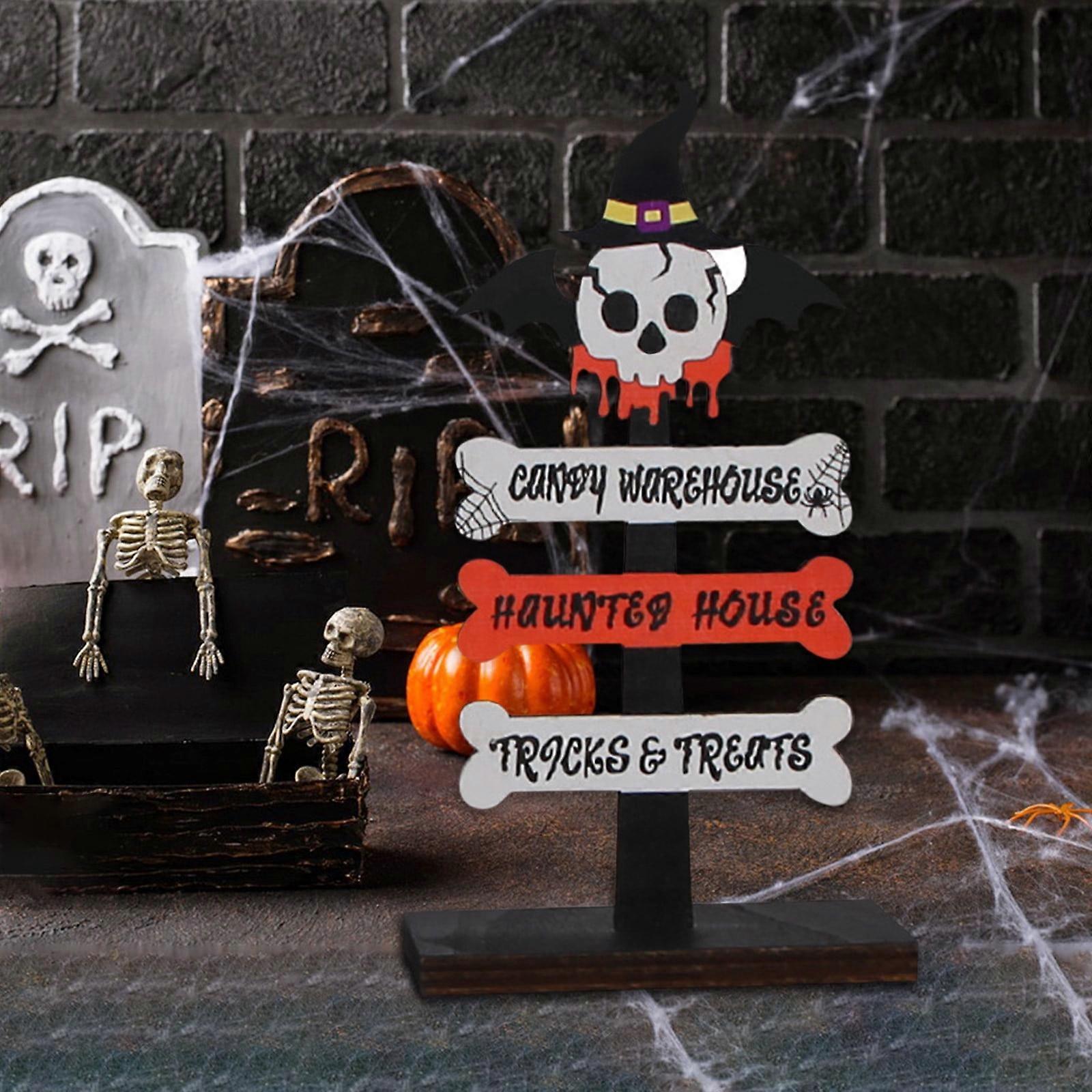 3 Pcs Halloween Ghost Decor, 1.57*3.14*5.7 Inch Wooden Tabletop Decorations for Desktop, Party Centerpieces, Craft Ornaments, Compatible with