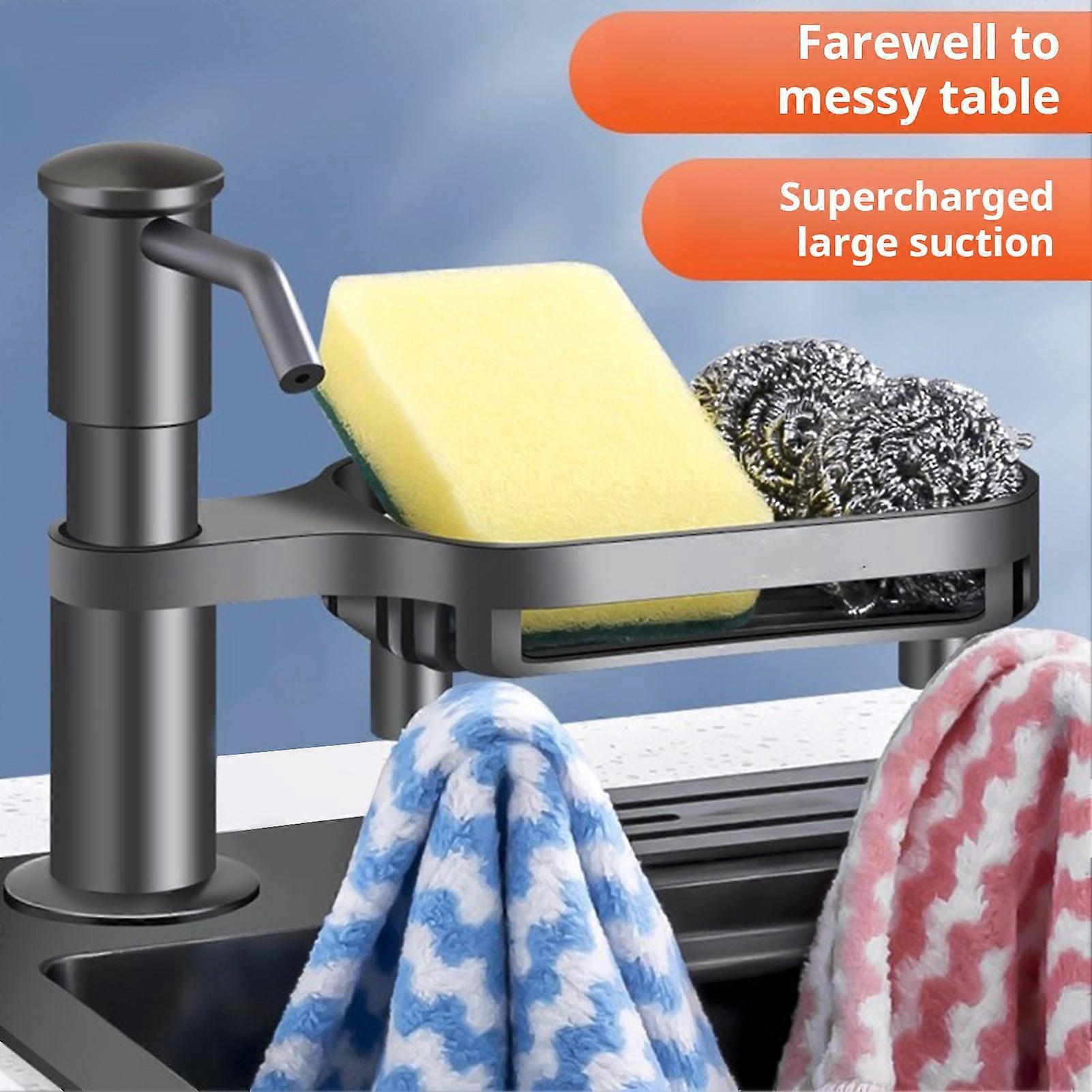 SUSUchens Sink Soap Dispenser with Storage Basket, 360° Rotatable Sponge Holder & Extension Tube Kit, Dark Gray