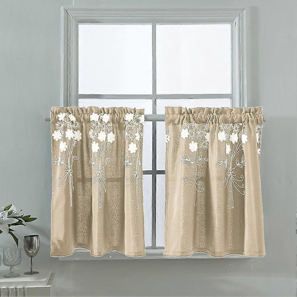 Sheer Yellow Kitchen Curtains with Leaf Embroidery, 137*61cm, Semi-Transparent Cafe Curtains for Window, RV, Camper, Bathroom, Basement, Farmhouse