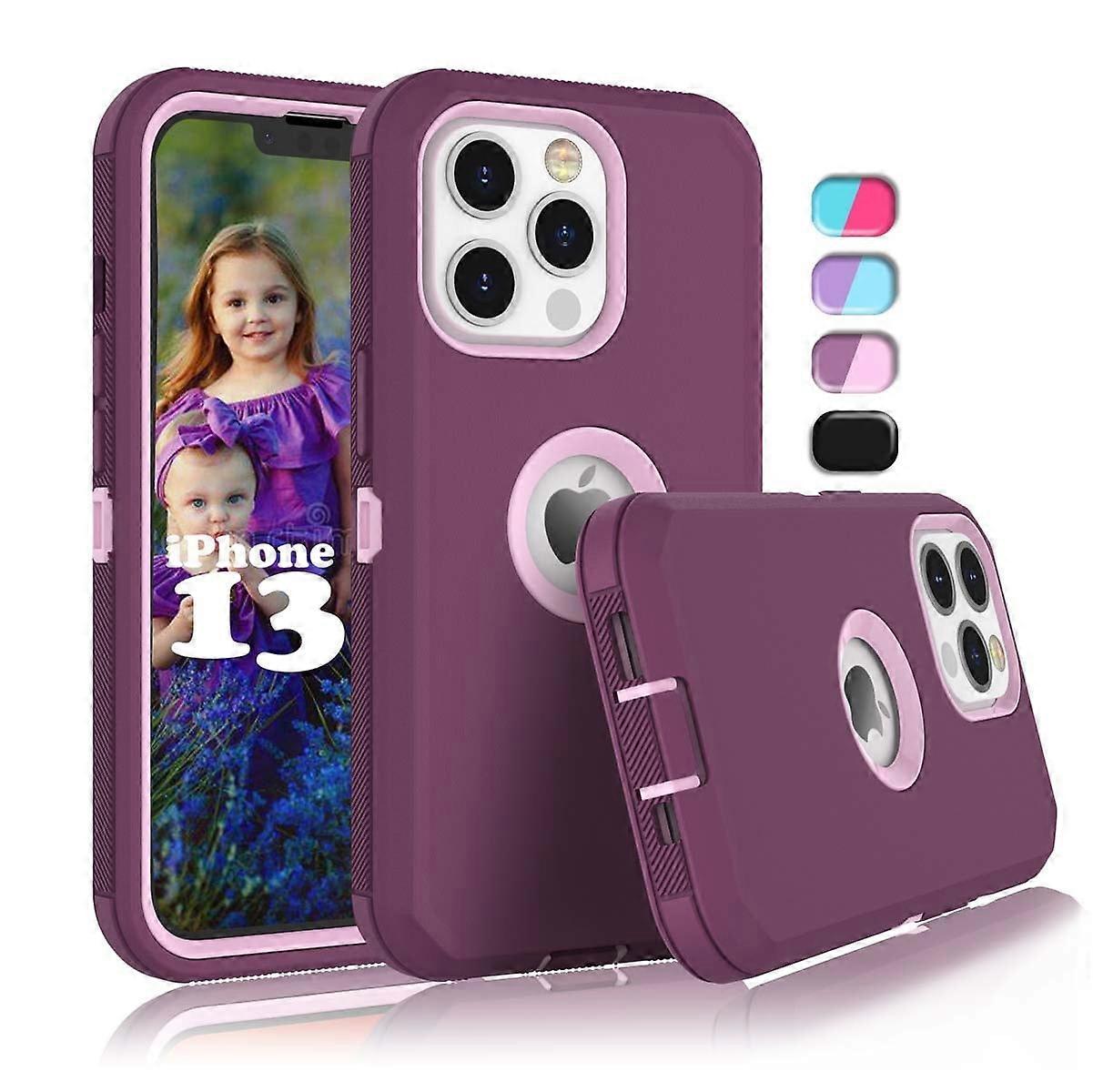 Compatible with iPhone 13 Cases, Sturdy 6.1" Full-Body Heavy Duty Armor Case with Shock Absorption Rubber Rugged Bumper - Red
