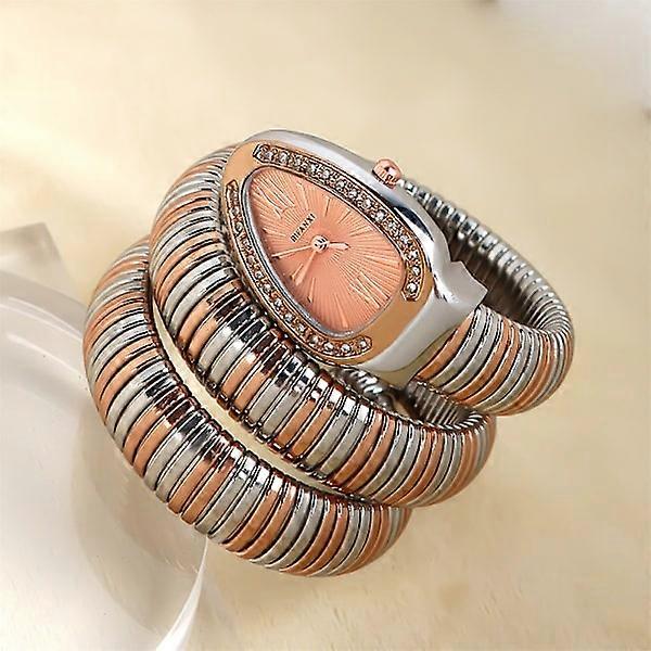 BIFANXI snake watch, women's fashion wristwatch, creative quartz watch Rose gold and silver gradient