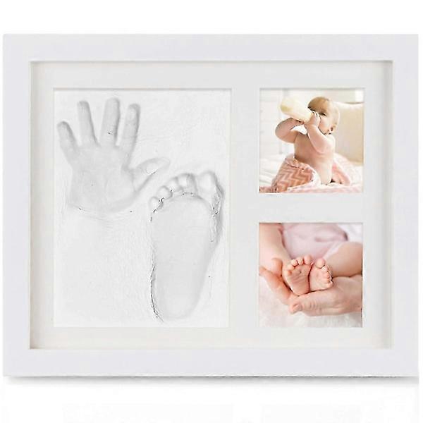 Baby Handprint and Footprint, Baby Wooden Frame with Plaster Cast, Hand and Footprint in Plaster