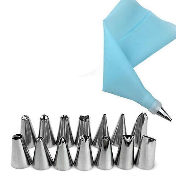 Silicone piping bag + 14 nozzles and connector Light blue