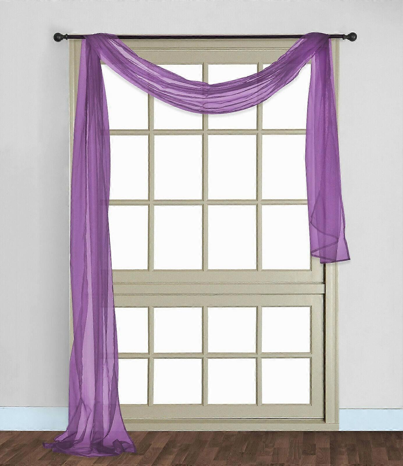 1PC VOILE SHEER SCARF WINDOW VALANCE PURPLE ELEGANT COLOR SWAG TOPPER SEE THRU SIZE 37" WIDE X 216" LONG