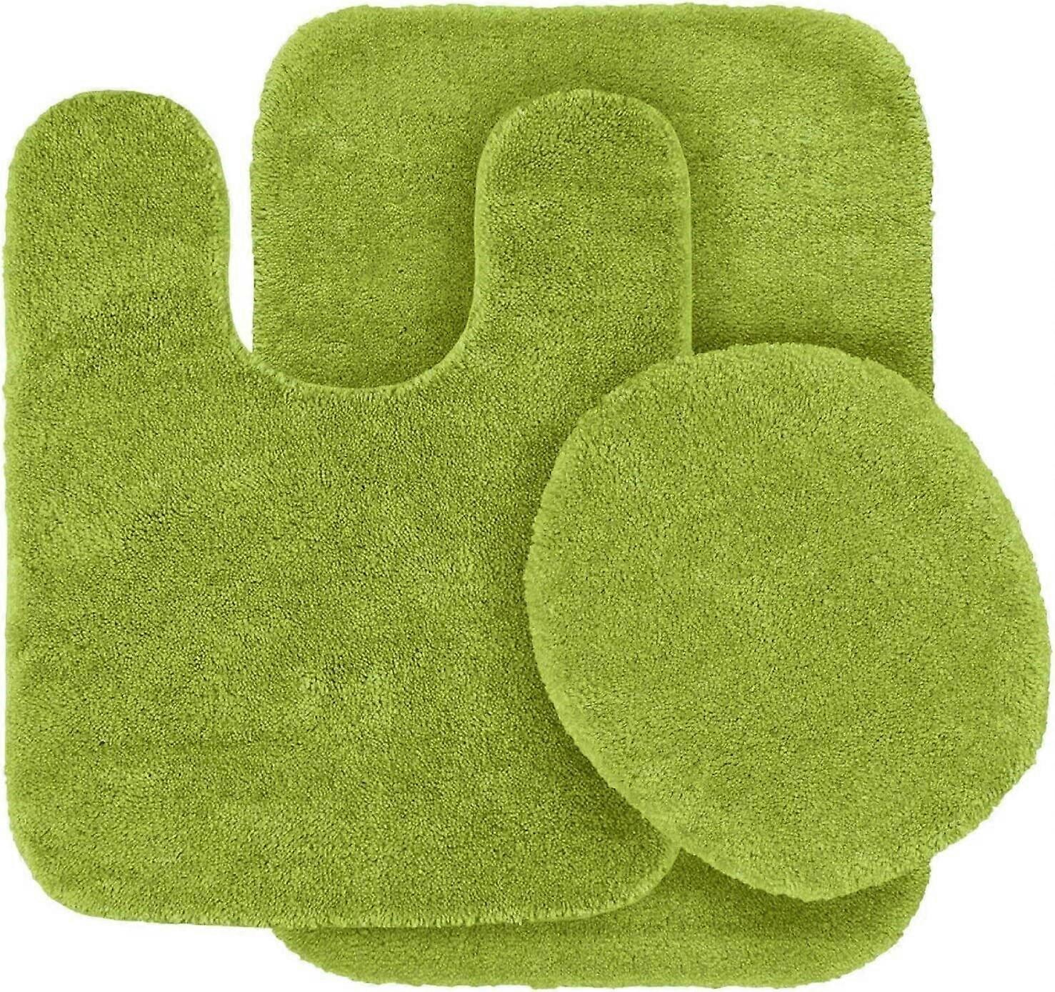 Home Bathroom Décor 3 piece Set Bath Mat #6 Lime Green Color U-Shaped Contour Rug, Mat and Toilet Lid Cover With Rubber Backing