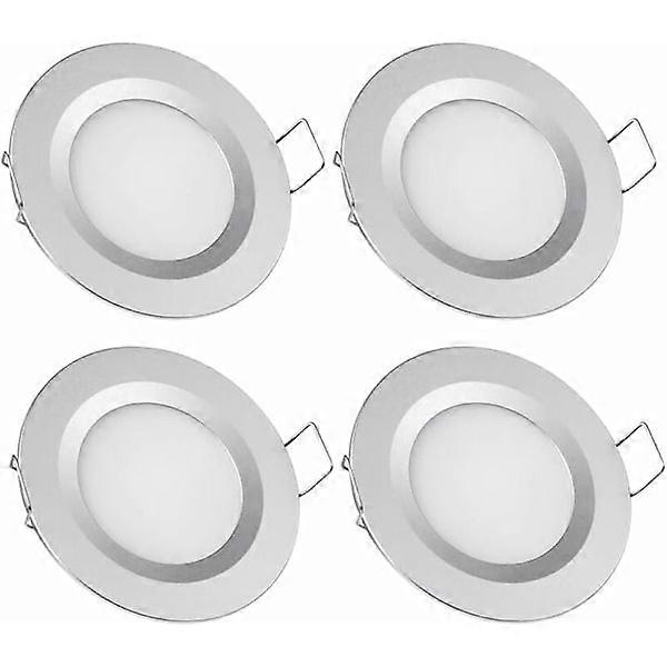 3 watts 12 volts 4 pieces. High quality finish - durable - elegant appearance. Lifespan 50,000 hours. suitable for motorhome, caravan, boat, yacht, kitchen, bathroom, bedroom Installation dimensions: Mounting holes: min. 58mm, max. 65mm. Diameter 70mm, thickness 12mm. Full aluminum and ultra-thin design: Made of full aluminum, which is conducive to heat dissipation from the LED chip board. 12mm thickness, lightweight and compact body fits tight spaces. resistant to shock and vibration Electronic data: DC 12V, 3W, 215 Lumen. Color temperature 3200K (warm white), Lighting angle: 120°, dimmable with PWM dimmer Note: Suitable for motorhome, caravan, boat, kitchen, bathroom, bedroom with DC 12V power supply. You need a DC12V power supply to power them for home use (Home power is AC110V-230V. Do not contact 12V AC power)