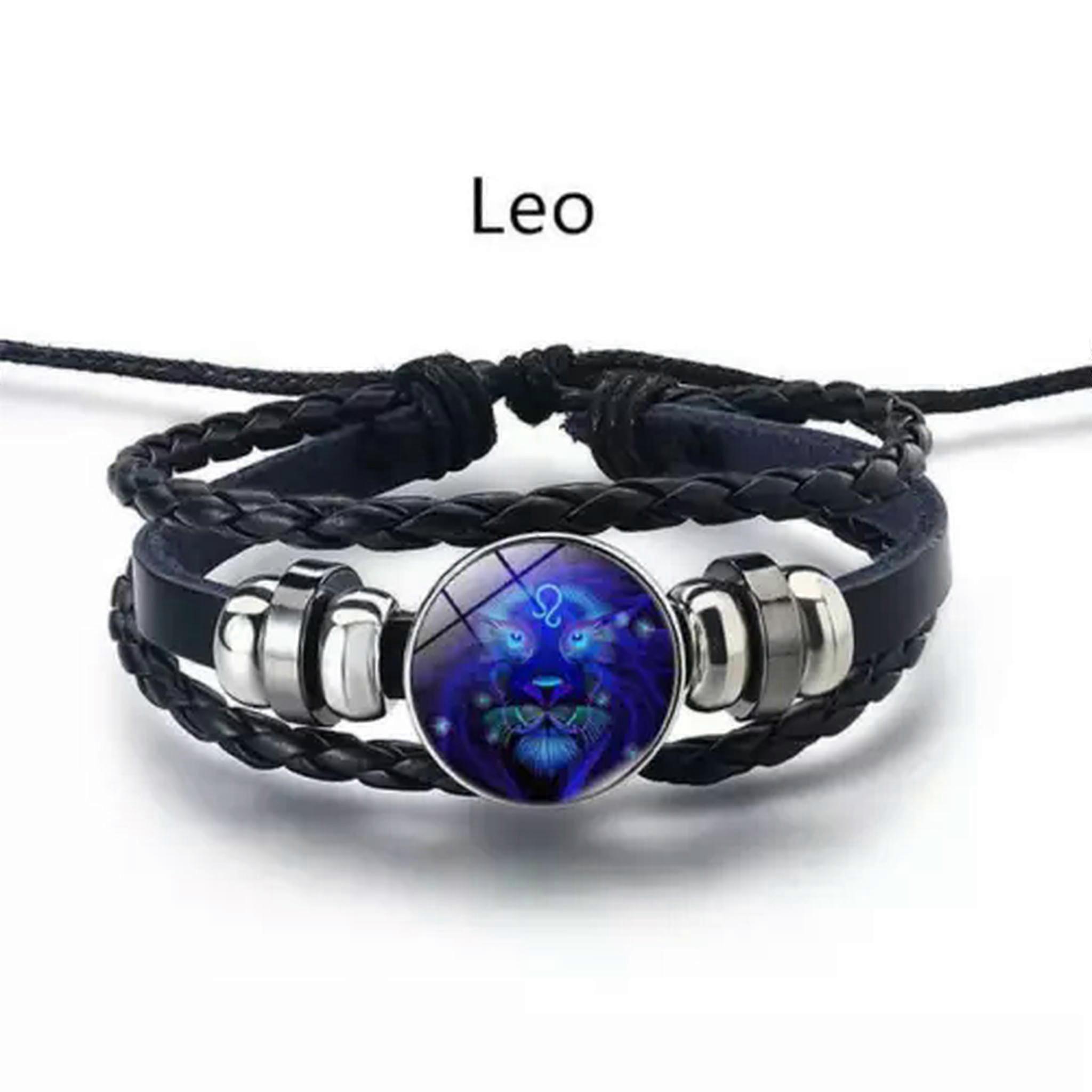 RSAMD 12 Constellation Bracelet for Men Women Zodiac Multilayer Leather Jewelry Gift-Leo