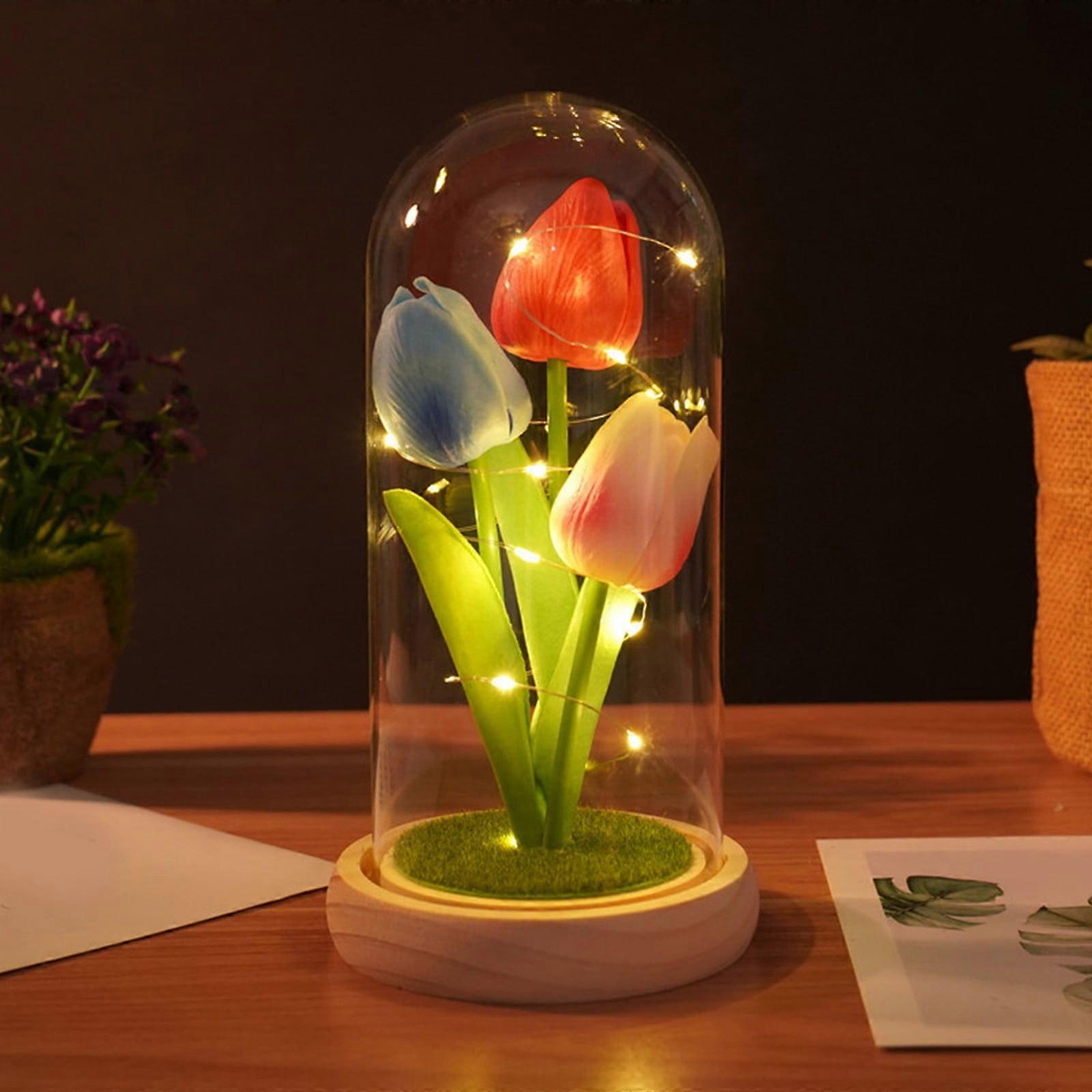 LOOPSUN Valentine's Day Clearance 2024! Handmade Tulips Night Light, Compatible with Bedroom Decor, Ambiance Lamp for Kids, Girls, Couples