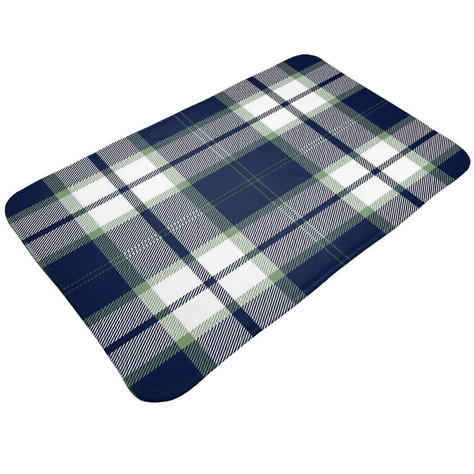 Blue & White Tartan Plaid Door Mat, Non-Slip Washable Rug, 20x31.5 Inch, Indoor Outdoor Mat Compatible with Christmas & Holiday Decor