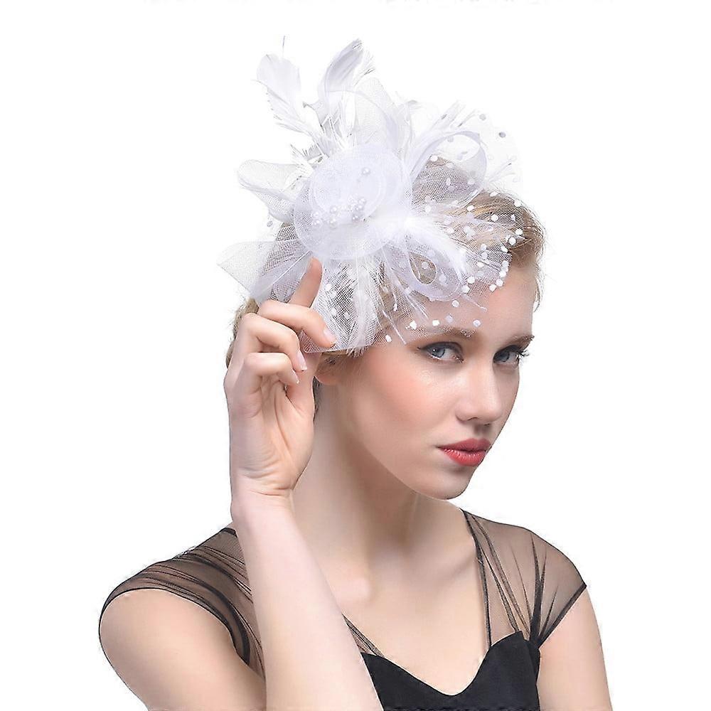 Ongmies Wedding Hat Clearance Women Flower Mesh Ribbons Feathers Headband Tail Tea Party Hat Headwear Accessories White