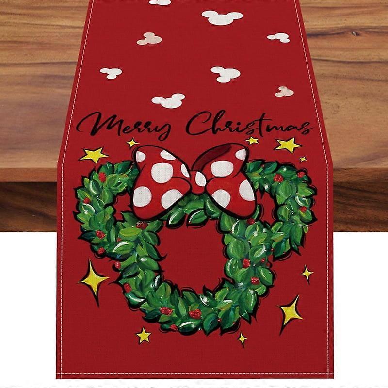 Merry Christmas Mouse Wreath Table Runner, Xmas Red Polka Dot Bow Stars Decor, Farmhouse Holiday Party Supply 13x36 in