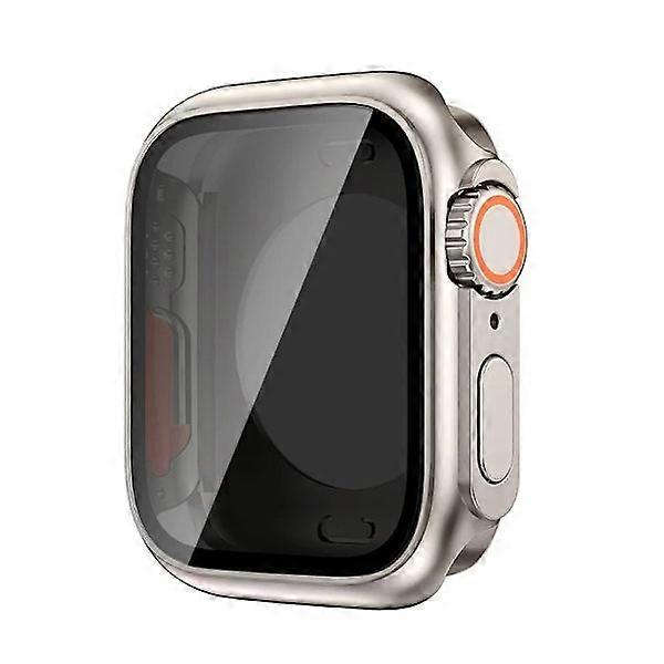 Privacy Tempered Glass + Waterproof Case for compatible with Apple Watch 45mm/44mm/41mm/40mm, iWatch Series 9 8 7 6 SE 5, Titanium Golden