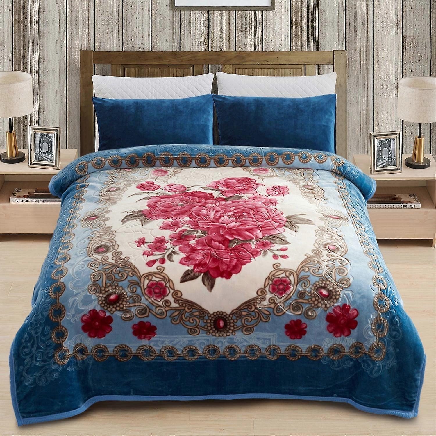 JML Soft Plush Fleece Blanket for Bed Queen 75"x87" 5lb,2 Ply Raschel Blanket Blue Flower