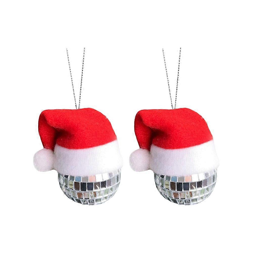 UOYOTT Silver Mirror Disco Ball W/ Santa's Hat Hanging Pendant Christmas Party Ornamen≮ Q9Y5
