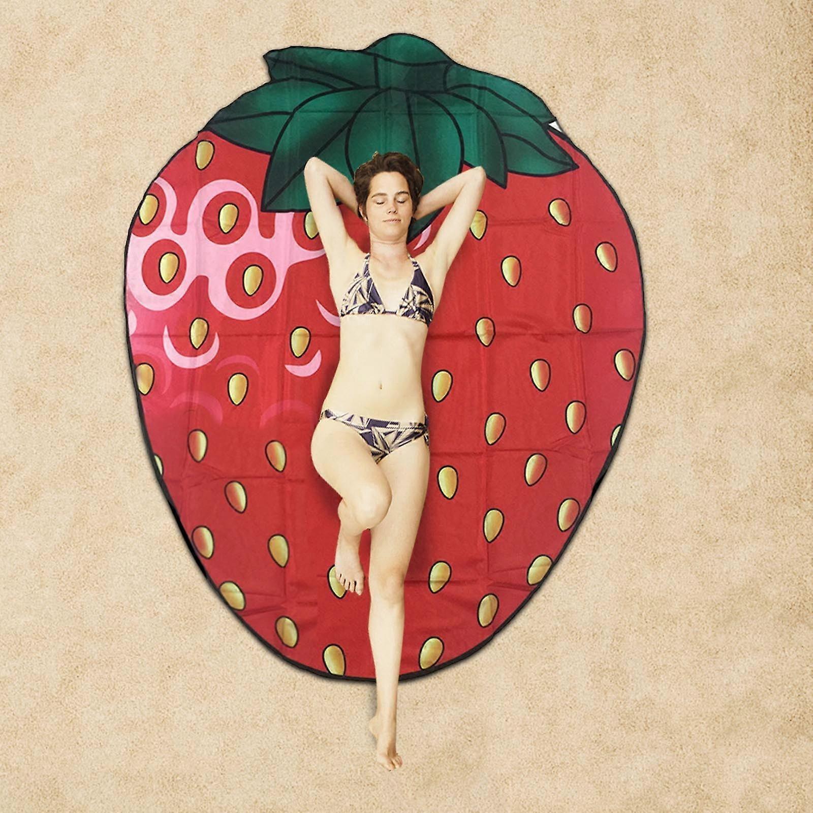 EQWLJWE Beach Mat, Large Sand-Free Waterproof & Quick-Dry Blanket for 4-7 People, 58" Strawberry - Compatible with Outdoor Picnics, Travel