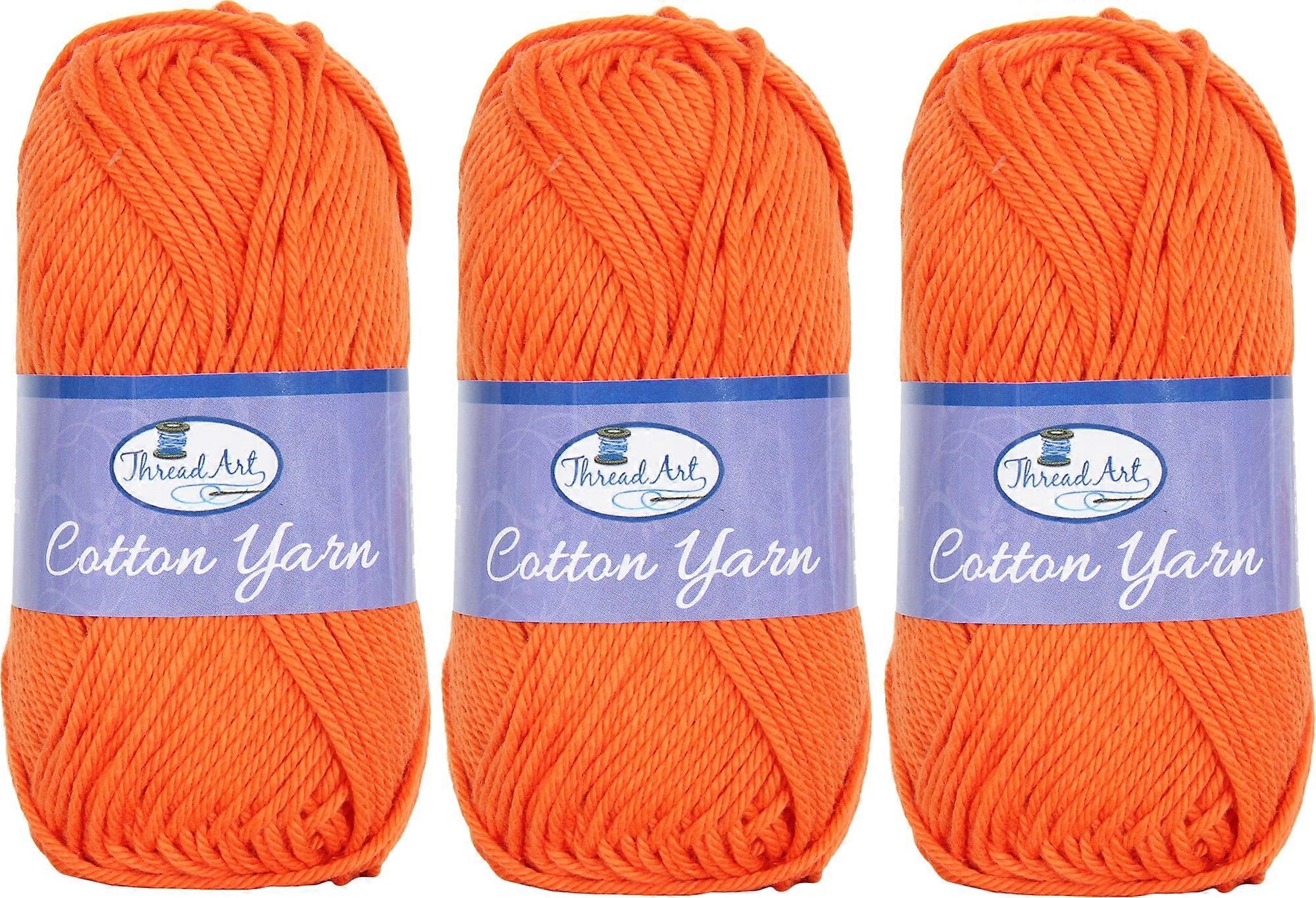 3 Pack of 100% Pure Cotton Crochet Yarn by Threadart | Orange | 50 gram Skeins | Worsted Medium #4 Yarn | 85 yds per Skein - 30 Colors Available