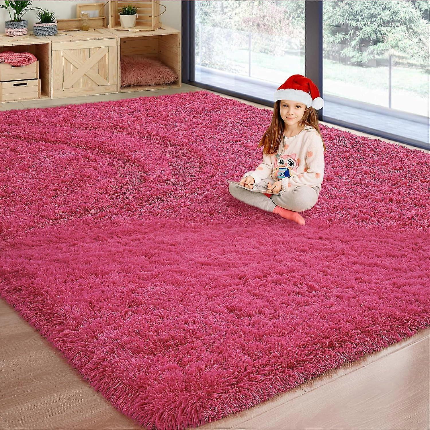 Soft Fluffy 2x3 Ft Area Rug, Shaggy Plush Rug Compatible with Bedroom, Nursery, Living Room, Dorm Decor (Rose Red)