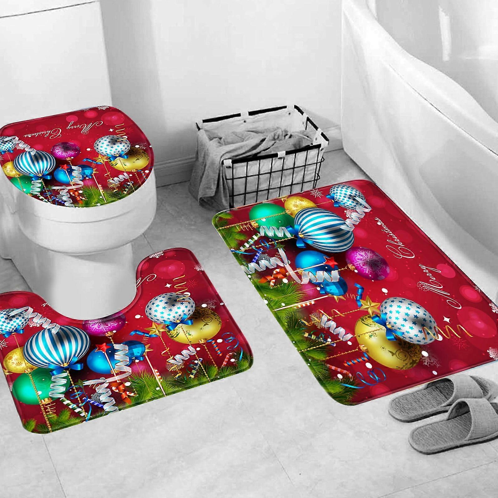 Daiosportswear Waterproof Bathroom Set 4-Piece with Non-Slip Rugs, Toilet Lid Cover & Shower Curtain - Compatible with Standard Sizes