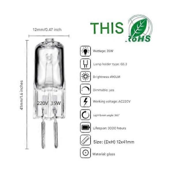 G5.3 Thick Base 12V/220V 35W (Long Life) - Warm White - 20 pcs AC220V