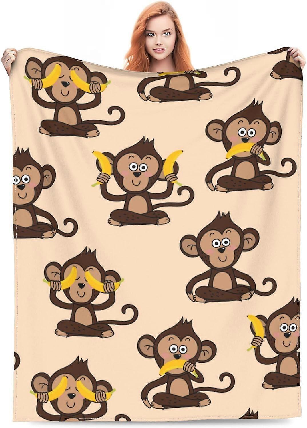 Cute Monkey & Banana Blanket, Soft Warm Cozy Throw for Adults/Kids, 40x50in, Living Room Bedding Couch Decor, All Seasons