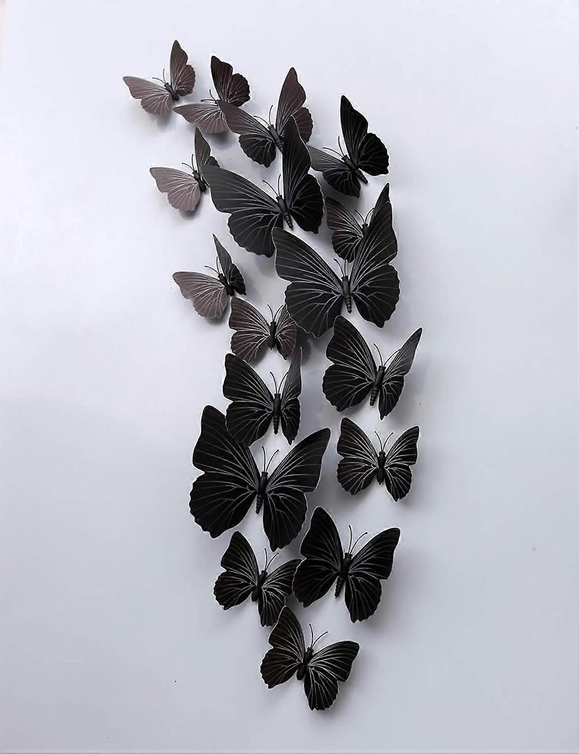 48 Pieces of Black 3D Butterfly Wall Stickers DIY Bedroom Living Room Decoration Party Interior Wall Art