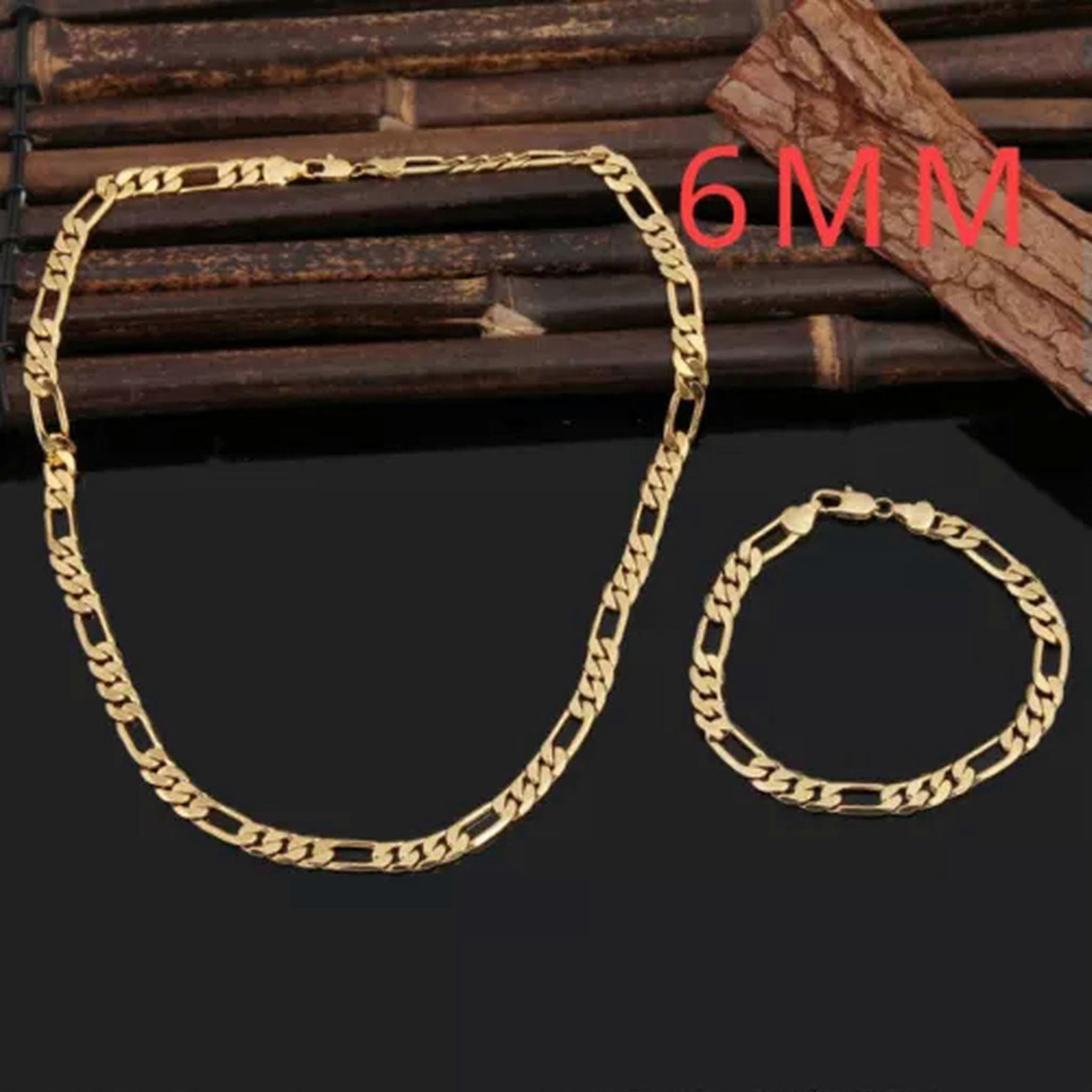 RSAMD 925 Sterling Silver 18K Golden 6MM Bracelets Neckalce Jewelry Sets for Women Men-Golden