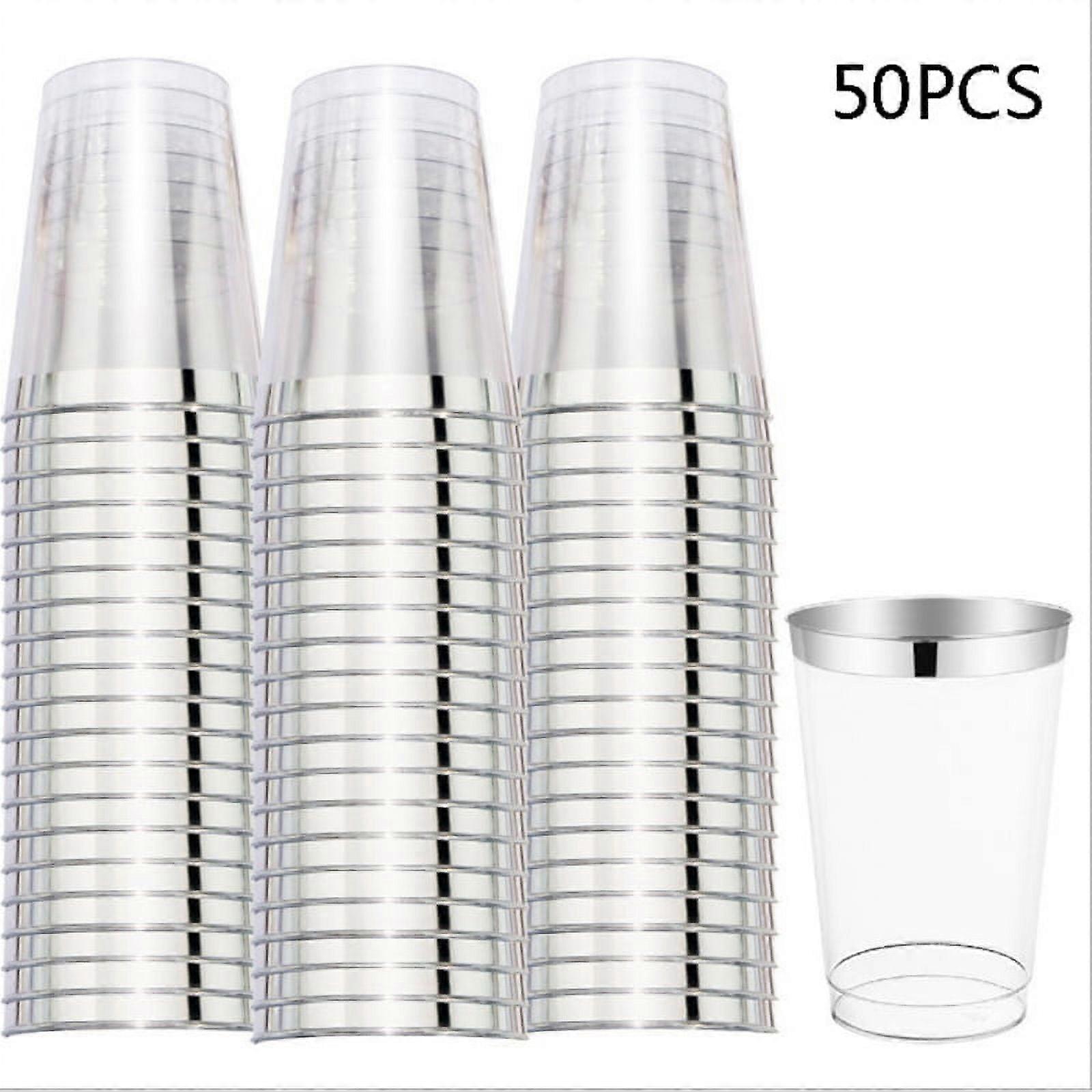 50PCS Plastic Cups 12 Oz Clear Plastic Cups Tumblers Rimmed Cups Fancy Disposable Wedding Cups Elegant Party Cups,Silver