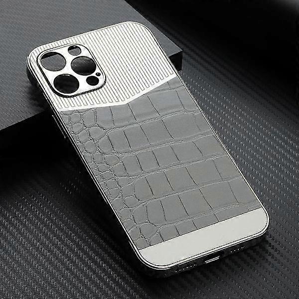 Compatible with iPhone 13, Pro & Max electroplated case with vegan leather luxury Silver one size
