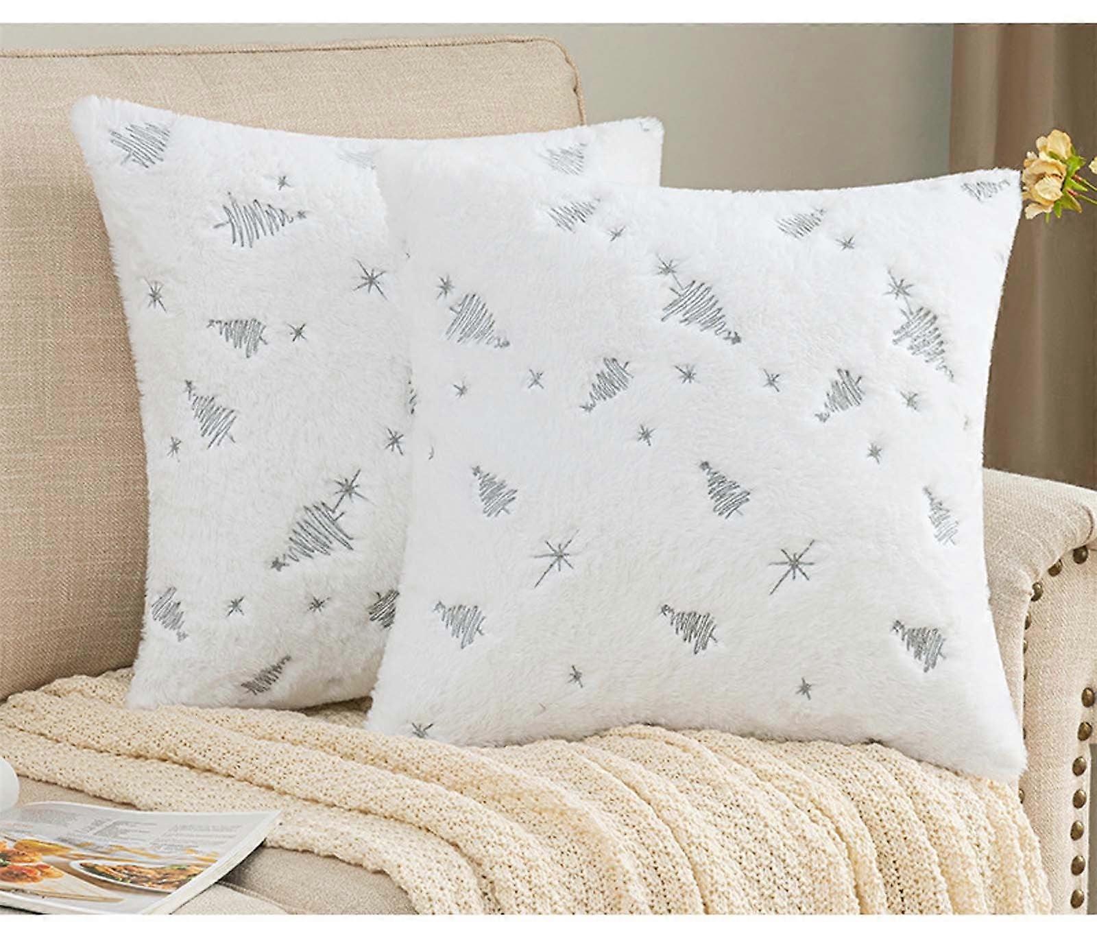 JLFNYA Plush Christmas Snowflake Tree Throw Pillow Cover Cushion Cover with Invisible Zipper Closure One Pillow Cover No Pillow Insert 18x18in