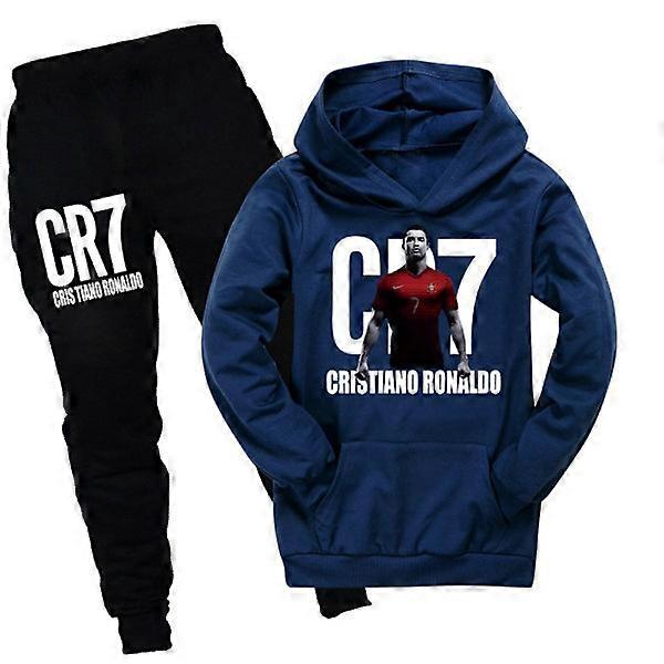 CR7 Ronaldo Kids Football Hoodie Sweatshirt Casual Tracksuit Clothing Navy blue 150cm