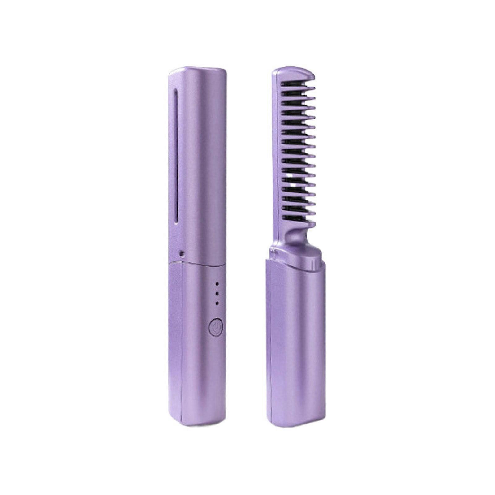 Ongmies Hot Comb Wireless Mini 2-in-1 Electric Straightening Brush & Curler, Anti-Scald Portable Hair Straightener Purple1