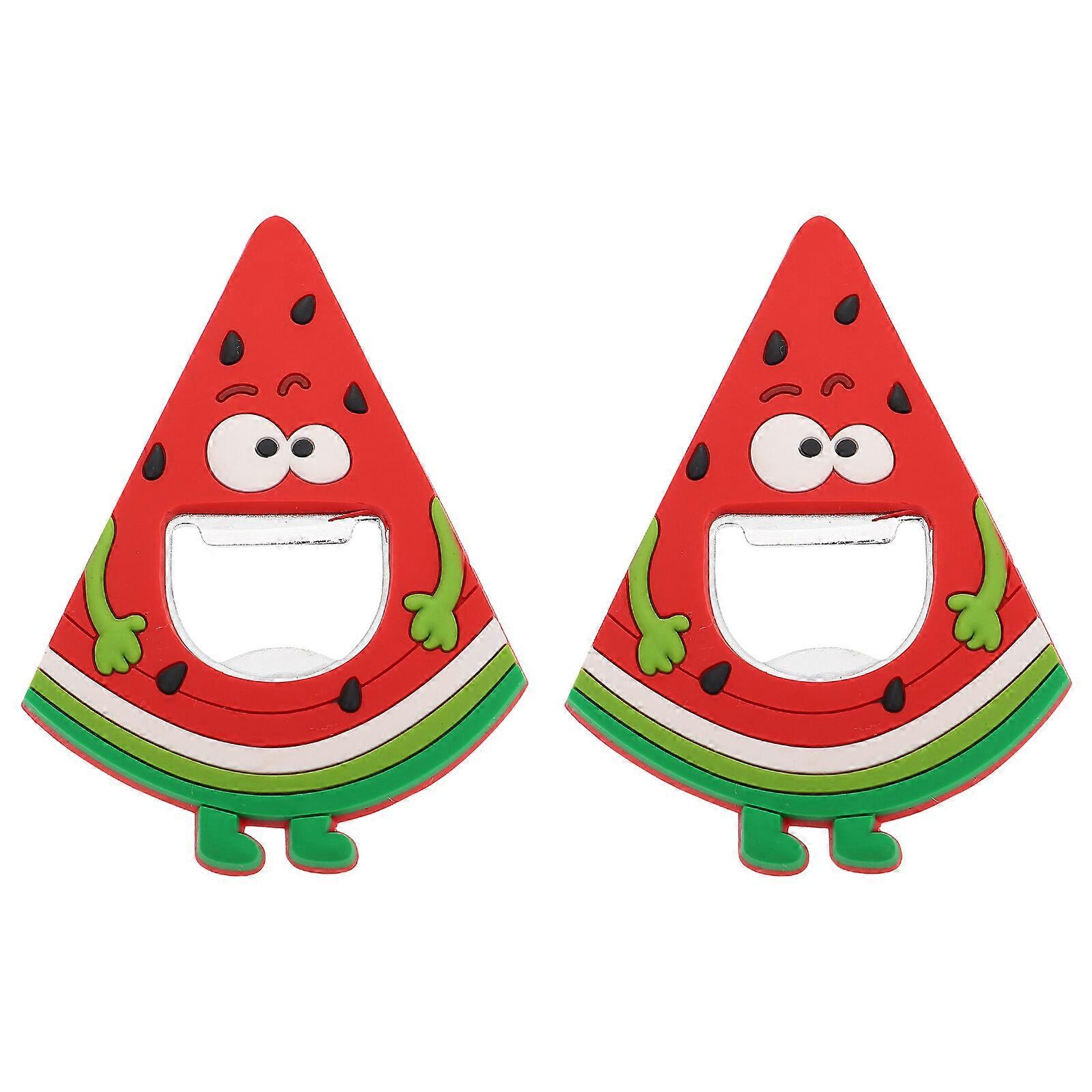 2 Pcs Refrigerator Magnets Wine Opener Pineapple Watermelon Corkscrew Bottle Opening Tool Cartoon Red Silica Gel