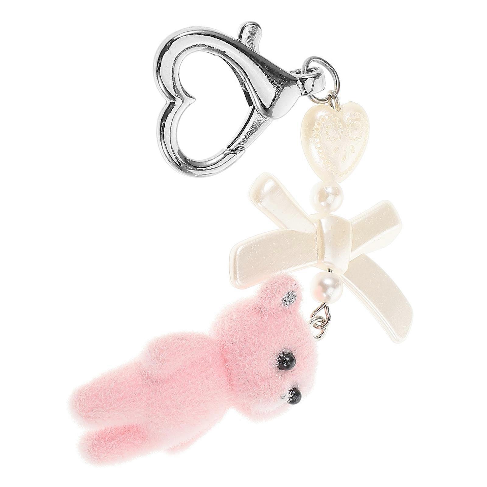 Cute White Bear Keychain Perfect for Bags and Decor Pink Resin 3D Design