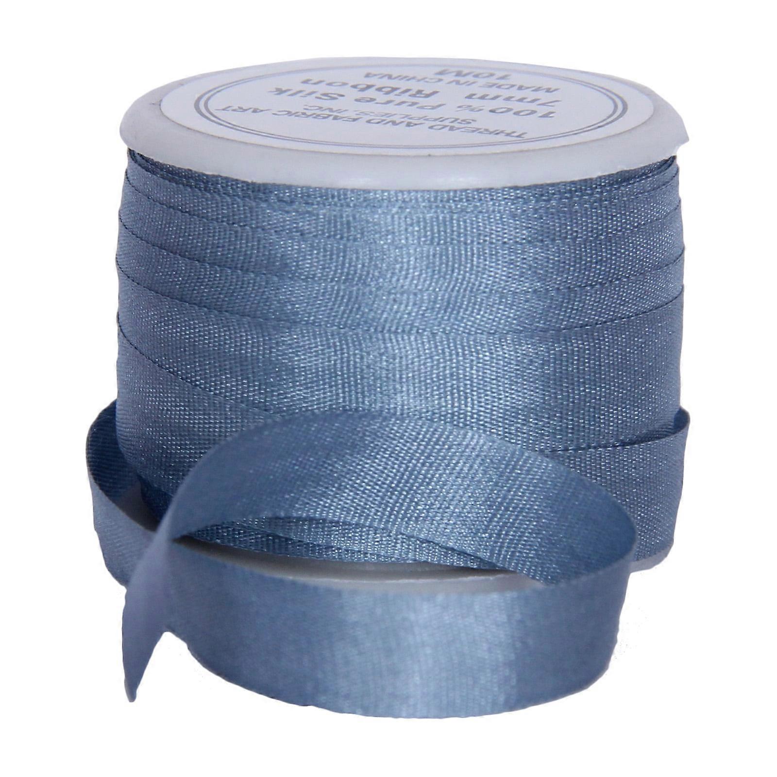 100% Pure Silk Ribbon by Threadart - 7mm Slate Blue - No. 012 - 3 Sizes - 50 Colors Available