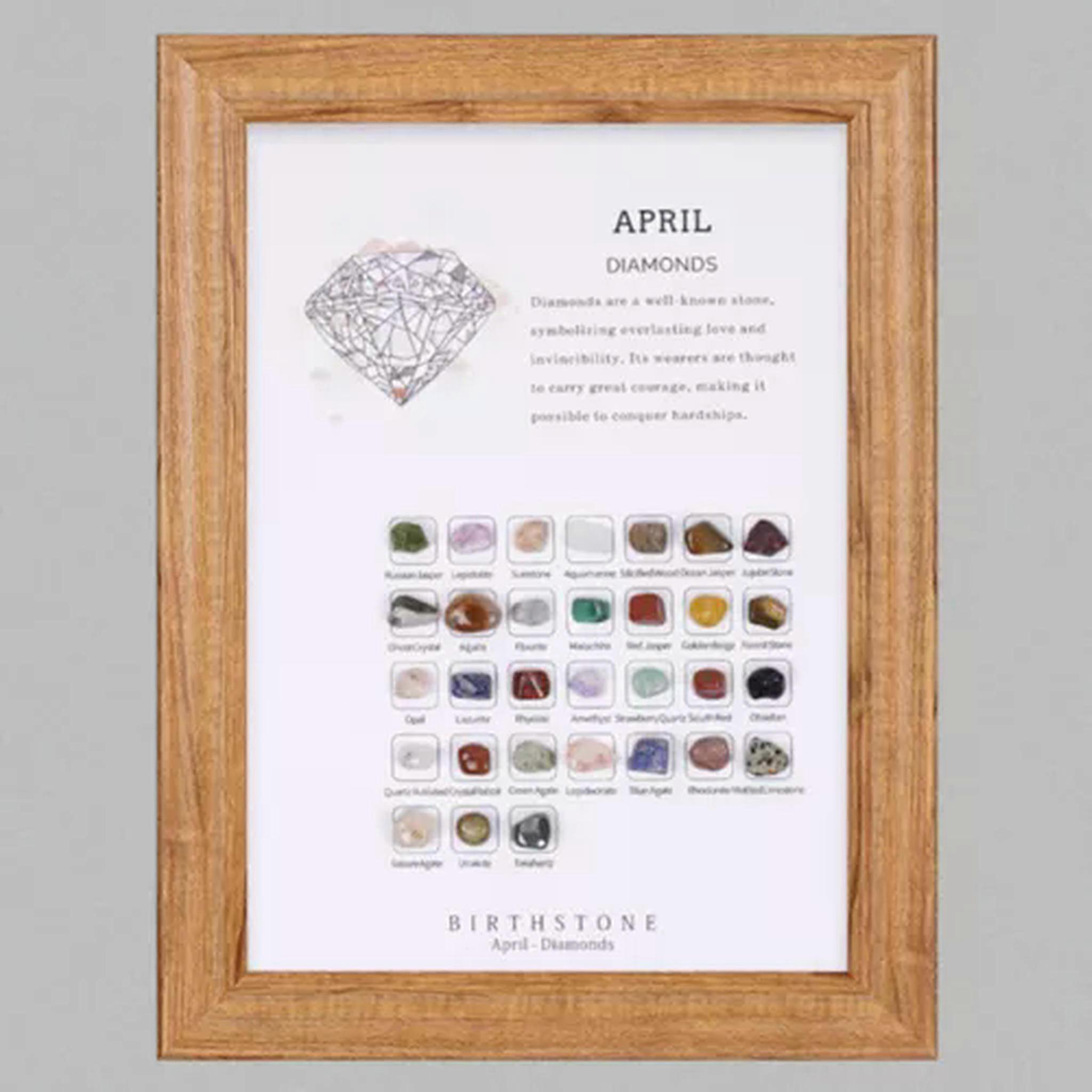 RSAMD 12 Months Birthday Stone Birthstone Wood Photo Frame Crystal Healing Reiki Craft-April