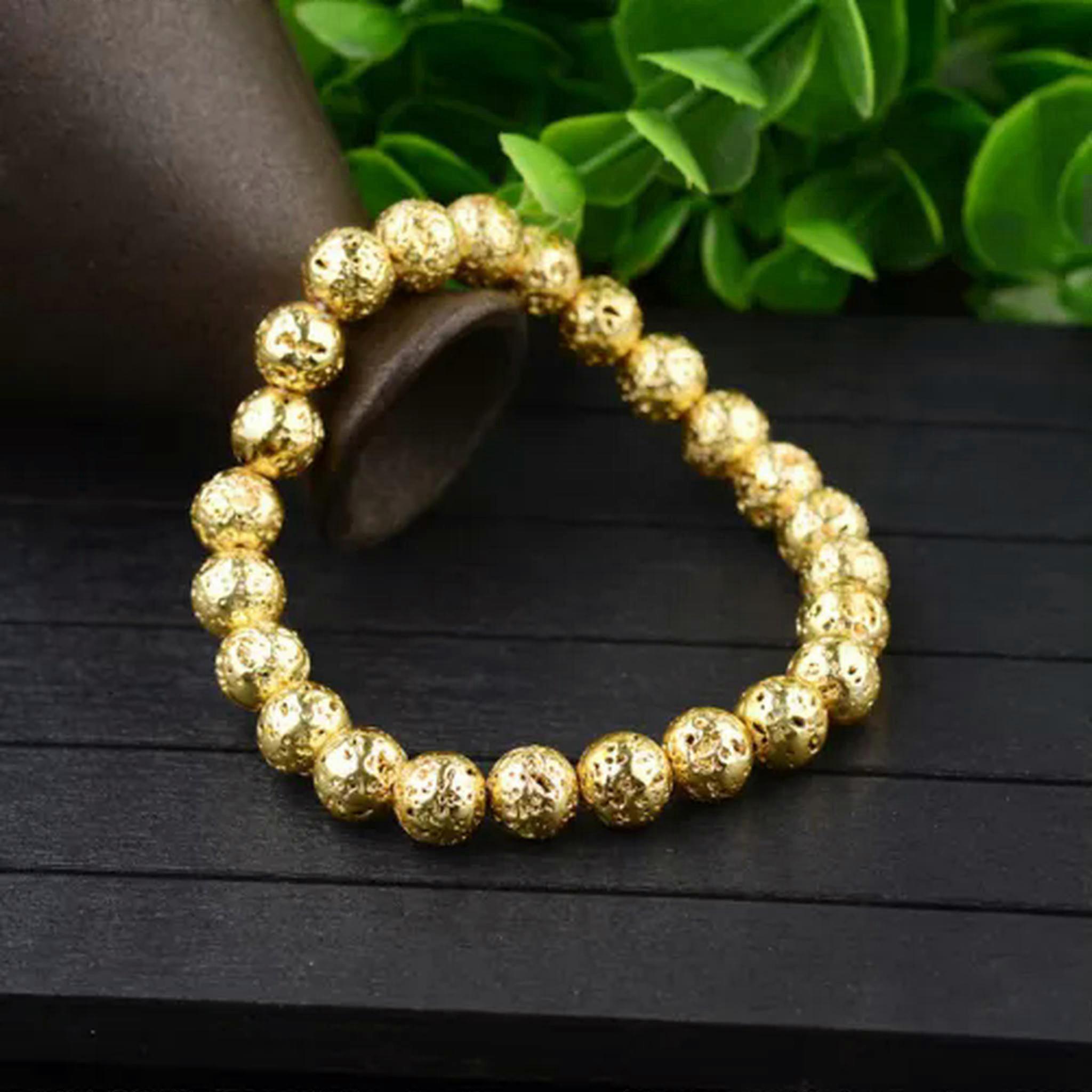 RSAMD Natural Stone Beads Multicolor Rock Volcanic Lava Round Beads Bracelet For Men-Gold-6MM