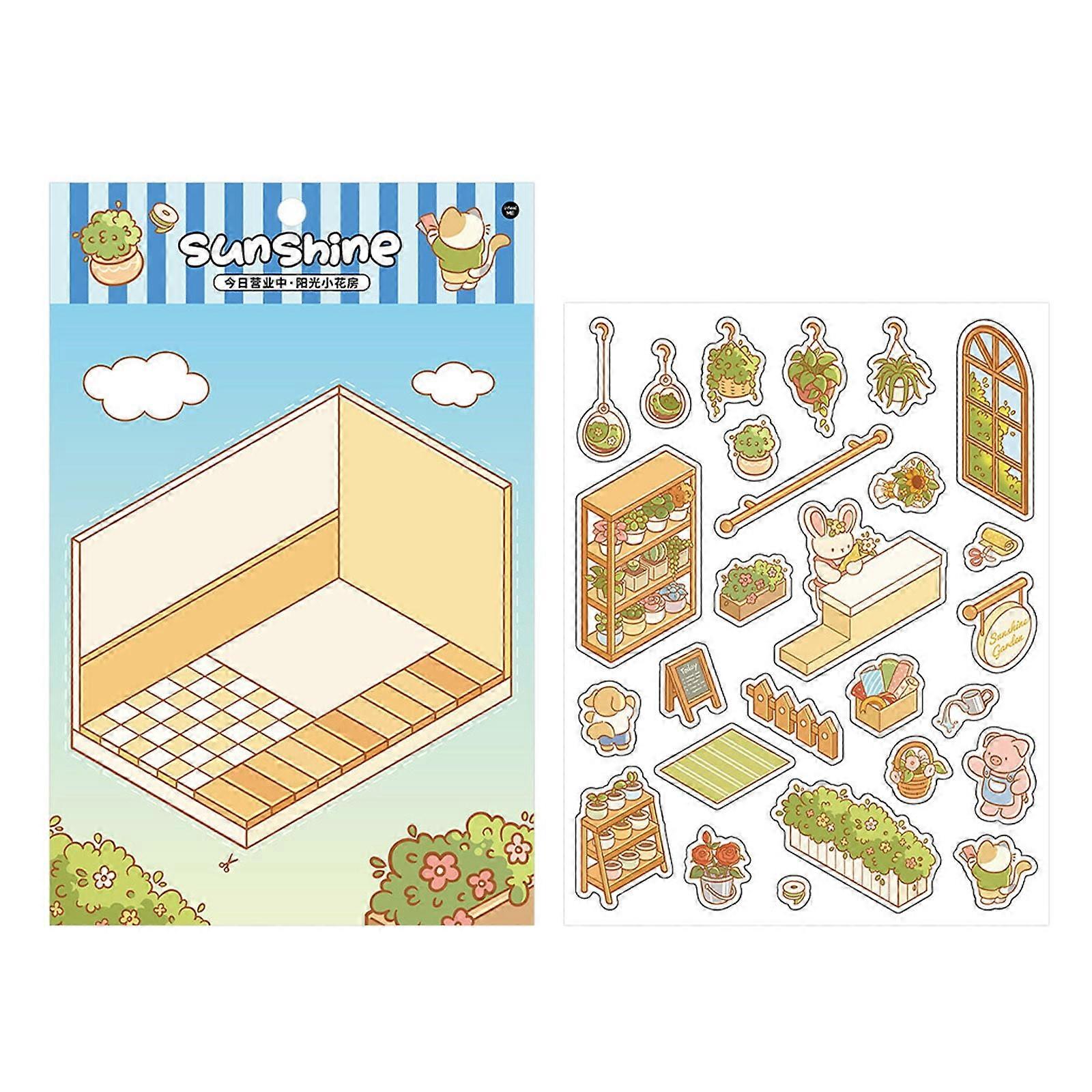 YANHAIGONG 3D House Stickers, Fun DIY Scene Kit for Mini Rooms – Supermarket, Coffee Shop, Restaurant, Bookstore – Cute Cartoon Stickers for