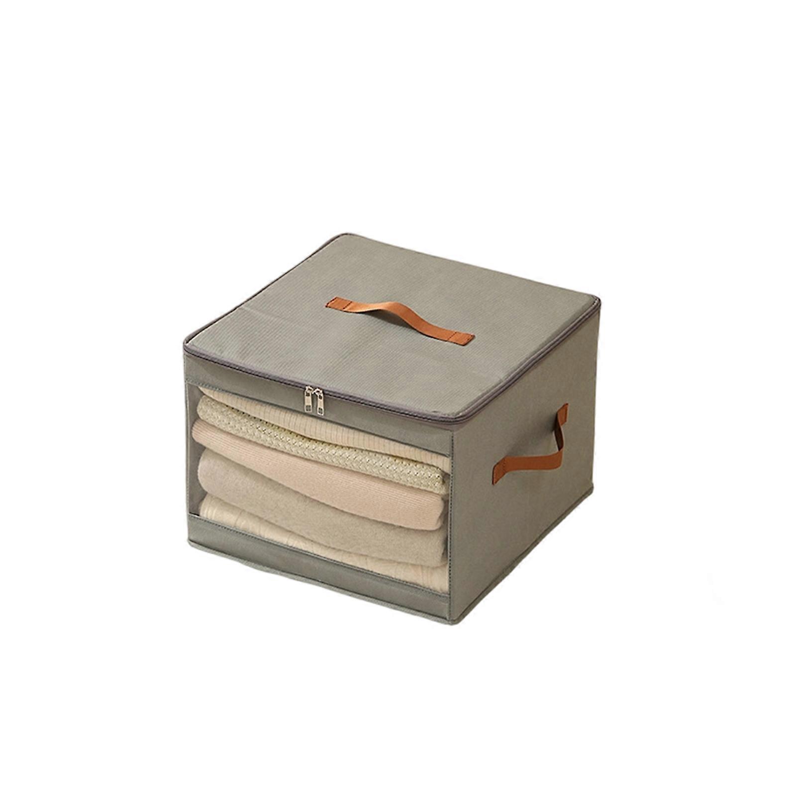 Foldable Clothes Storage Box Clear Window Waterproof Large Capacity with Handles for Seasonal Clothing Organization grey