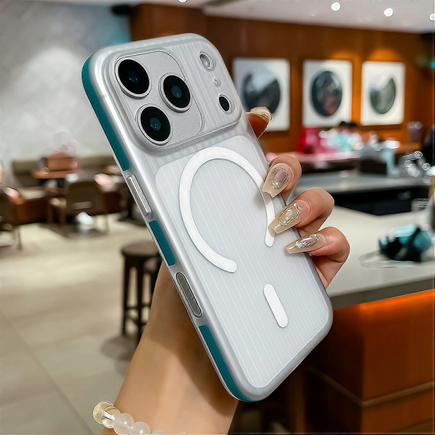 For iPhone 17 Pro Case Compatible with MagSafe Corrugated Texture PC Phone Cover with Tempered Glass Film