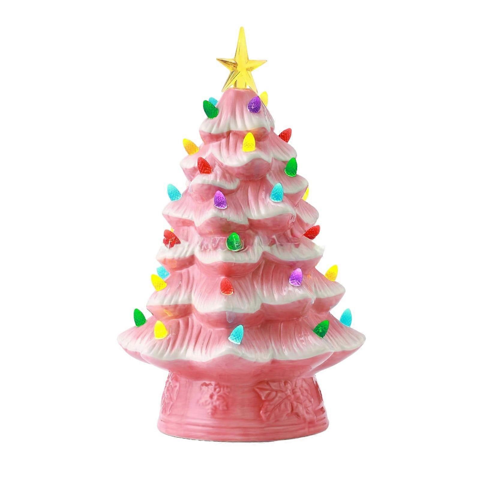 AUDeals Hot! Small Ceramic Christmas Tree with Lights, Hand Painted Vintage Tabletop Holiday Decoration, Multi-Color Lit Green Xmas Tree
